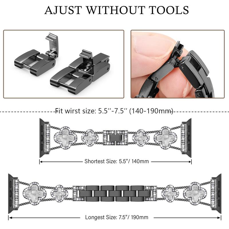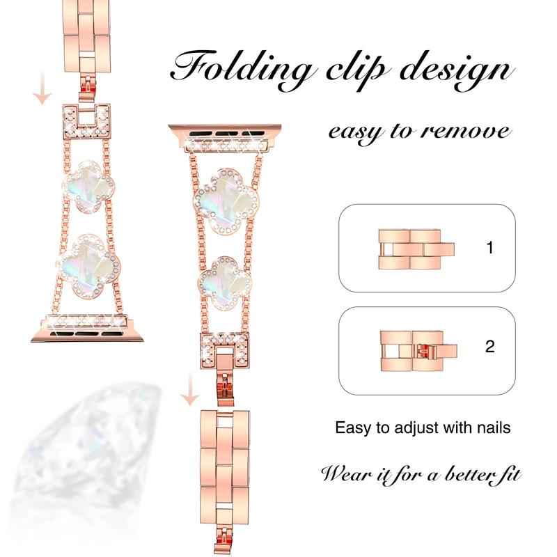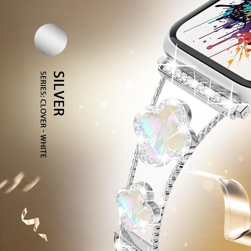 BUREI ZY White Shell Clover Slim Metal Bracelet for Apple Watch - Business & Dressy Strap Compatible Ultra 2/Ultra/Series 9-1/SE/SE2 (38-49Mm) Women & Men (Watch Not Included)